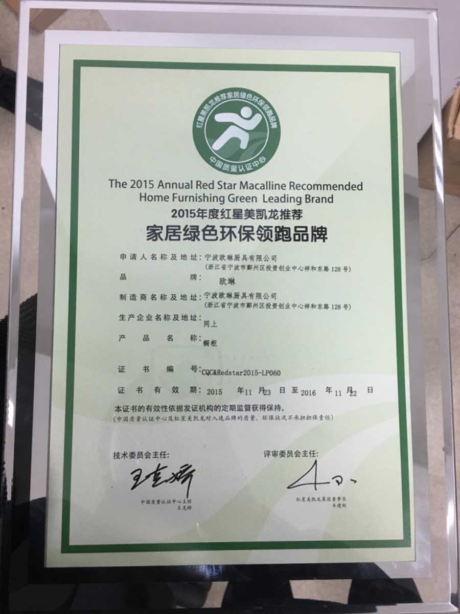 12月10日,由紅星美凱龍與CQC(中國質(zhì)量認(rèn)證中心)聯(lián)手發(fā)起第三屆“紅星美凱龍推薦家居綠色環(huán)保領(lǐng)跑品牌”評(píng)選結(jié)果揭曉。OULIN歐琳自2013年、2014年以來再次獲得該項(xiàng)榮譽(yù)(櫥柜行業(yè)),連續(xù)三年綠色領(lǐng)跑,為整體櫥柜行業(yè)樹立環(huán)保的新典范。