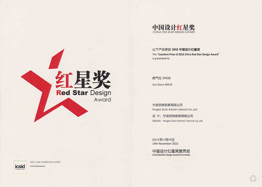 產(chǎn)品的創(chuàng)新力是一個企業(yè)的生命,OULIN歐琳曾連續(xù)5年榮膺全球工業(yè)設(shè)計最高獎“紅點獎”,而在剛剛揭曉不久的“2015中國設(shè)計紅星獎”中,OULIN歐琳廚電兩款產(chǎn)品CXW-200-IF6“主動免洗”吸油煙機、S902B“四翼速火”燃?xì)庠罘謩e榮獲“紅星獎”。 今年共有來自18個國家1566家企業(yè)的6025件產(chǎn)品參評,最終僅有包括高鐵、大型機械、智能機器人、3D打印機、無人機等200余件產(chǎn)品獲此殊榮。
