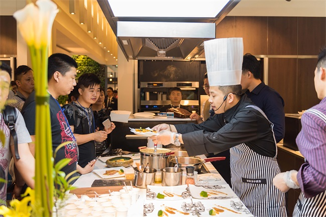 2016上海國際廚衛(wèi)展,OULIN歐琳展區(qū)還邀請了米其林大廚和烘焙大師各顯身手。精美西餐的現(xiàn)場制作,難得一見的米其林大師傾情教授,吸引了不少現(xiàn)場觀眾的圍觀。而另一頭的烘焙制作更是散發(fā)出誘人的黃油香,讓路過的人情不自禁停下腳步,貼心的工作人員為所有駐足的人們派送烘焙小點(diǎn)心,一一邀請他們共同品嘗美食。這不僅是OULIN歐琳的分享,更是OULIN歐琳體驗(yàn)式開放廚房的最美展現(xiàn)。