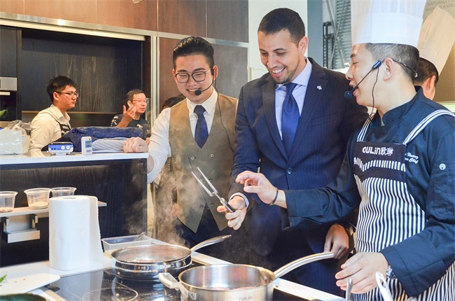 據(jù)悉,相較往年,本屆上海國際廚衛(wèi)展,OULIN歐琳更加注重與現(xiàn)場客戶的互動性,注重活動現(xiàn)場以及廚房帶給人們的體驗(yàn)性,這點(diǎn)從規(guī)模和形式上都有所提升和展現(xiàn)。在OULIN歐琳展館不但有外籍薩克斯現(xiàn)場solo、外模贈送鮮花;更有米其林大廚現(xiàn)場烹飪,與消費(fèi)者互動教授烹調(diào)技巧;同時(shí)OULIN歐琳展區(qū)外還有專業(yè)服務(wù)人員派發(fā)現(xiàn)烤蛋撻和餅干等美味小點(diǎn)心,展區(qū)內(nèi)的香濃咖啡可以免費(fèi)暢飲。讓現(xiàn)場客戶一邊暢享美食一邊徜徉精品之林,美不勝收。